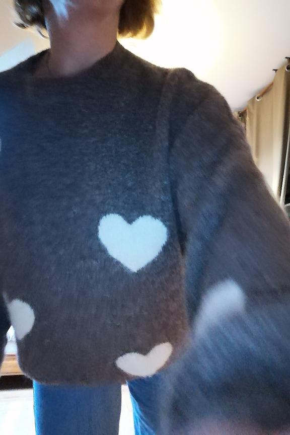 Team this snug pull with skinny jeans and ankle boots for the perfect cocooning look this winter. • Cozy pull • High collar • Long sleeves • Loose fit • Heart pattern