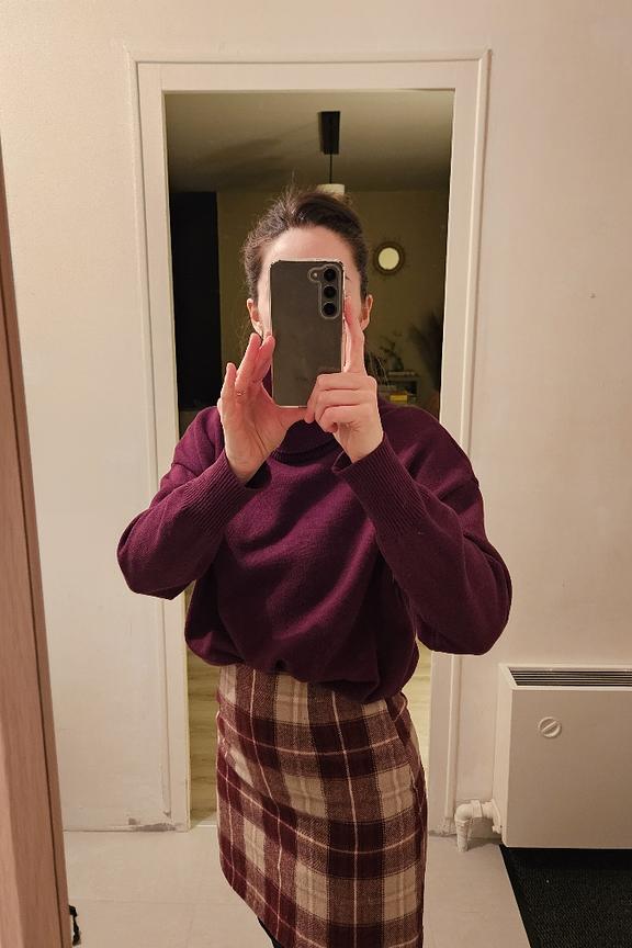 “I love the color Warm, comfortable sweater with an oversized effect Very nice”
