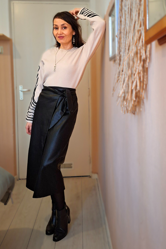 “I took a size smaller because it is an oversized model. Delightfully soft fabric, supple and warm.”
