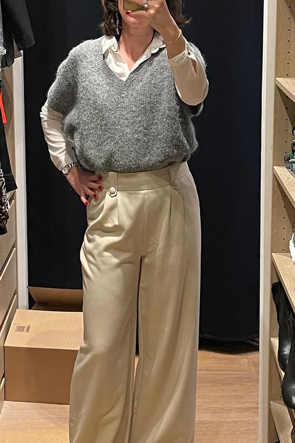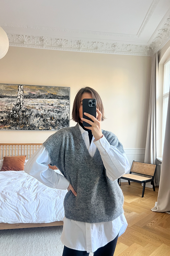 “As in the picture it‘s cutest with a white blouse underneath 🤍 Fits perfectly to tight and wide trousers. It’s also super soft.”