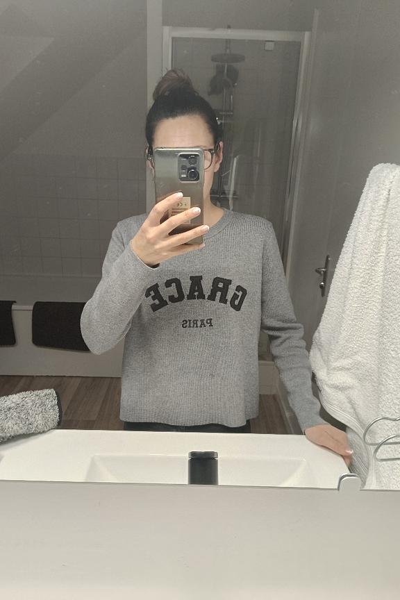 Pair this pull with fitted pants for a chic yet casual look. It's perfect for lighting up those winter days with modern elegance. • Soft and comfy pull • Classic crew neck • Long sleeves • Relaxed fit • Contrasting text pattern