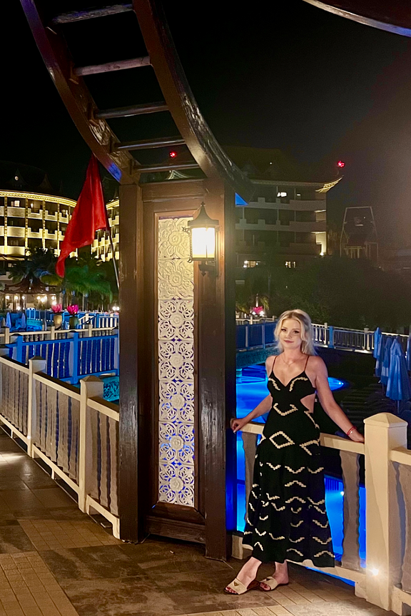 “Very nice dress. Thick material so it falls nicely but can be a bit warm. Not very suitable for large breasts (I wear a 90G), so I paired it with a swimsuit for a beach look.”