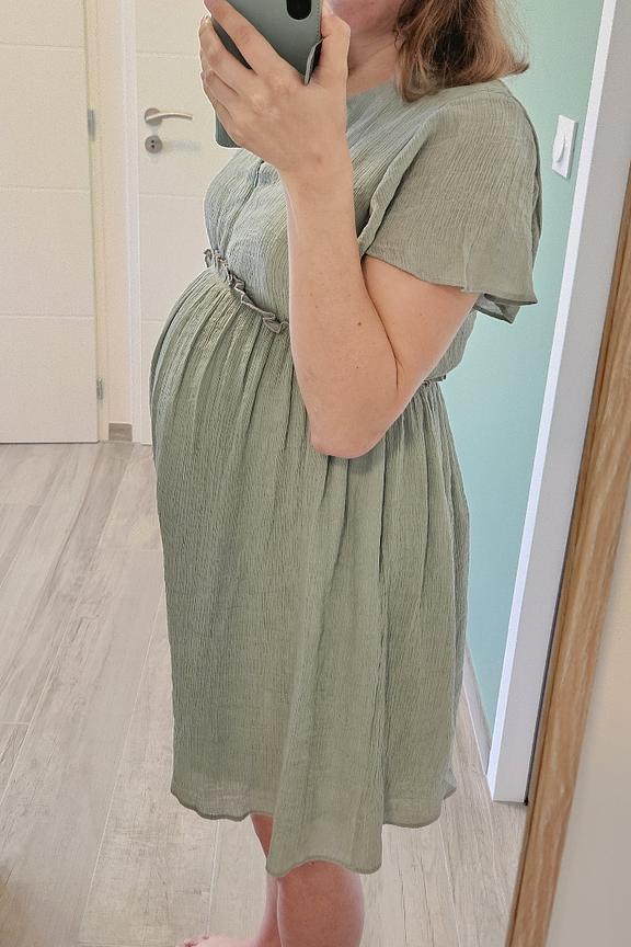 Enhance your summer with this lightweight and airy maternity dress, ideal for lounging under the sun. Pair it with flat sandals and a straw hat for a perfect summer look! • Viscose maternity dress • Short sleeves • Delicate round neck • Timeless khaki shade