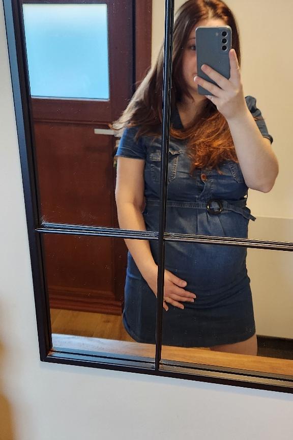 “Really tight dress at the end of pregnancy, especially at the bust. I still took a size up after reading the comments”