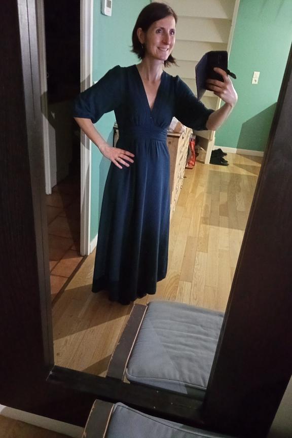 “Super coupe and super fit. I am short so it made me a long dress down to the ankles, perfect Nice fabric and very pretty color”
