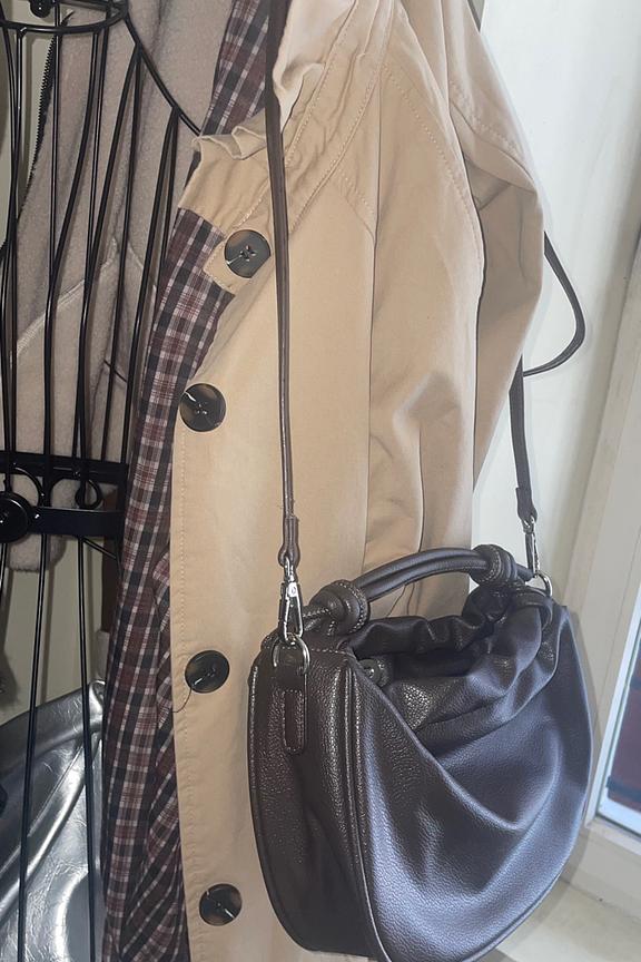 Add a stylish touch to your outfit with this brown handbag, easy to pair with straight jeans and ankle boots for an effortless chic look. • Modern handbag • Elegant ruched handle • Soft-touch texture • Compact and practical design • Secure closure