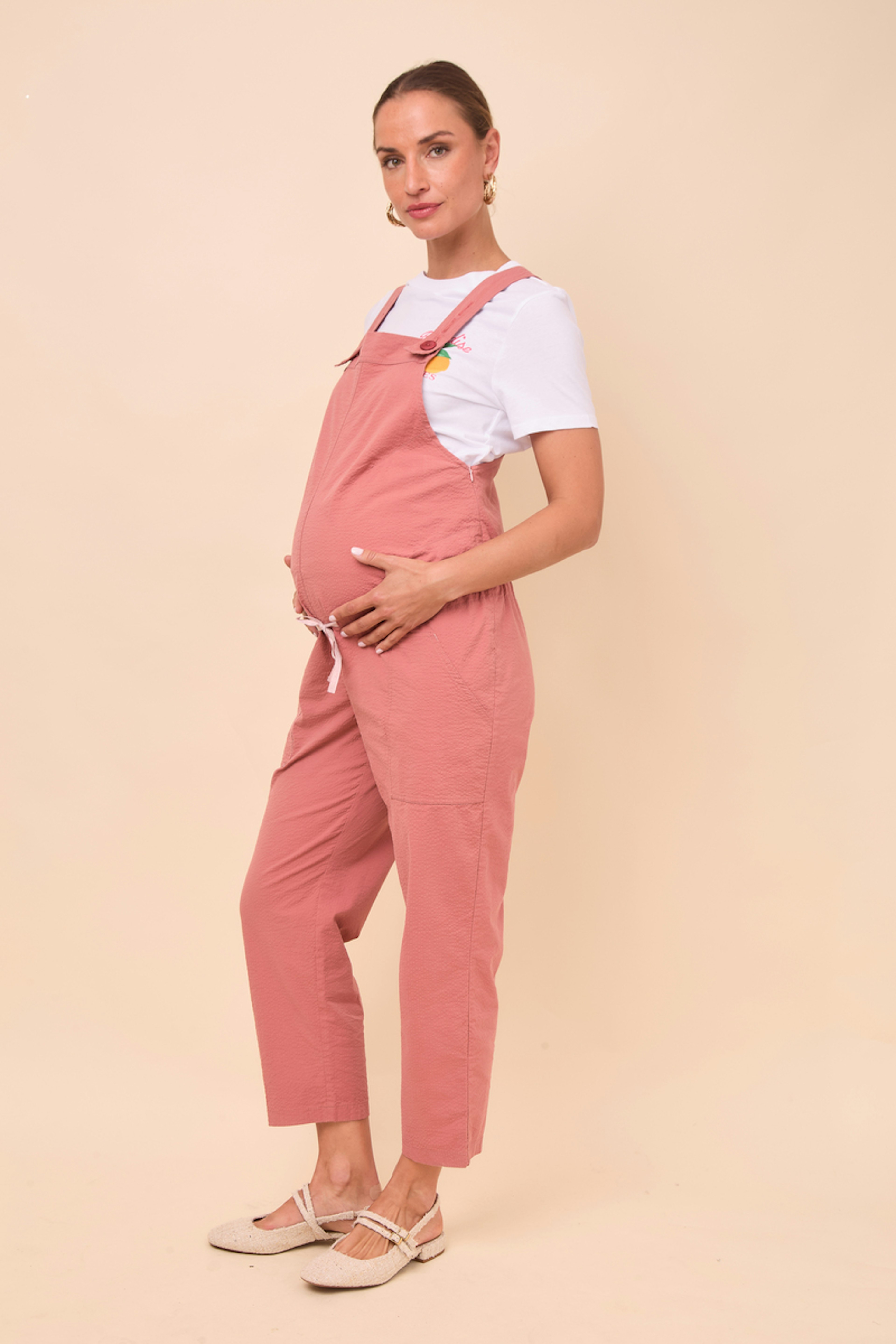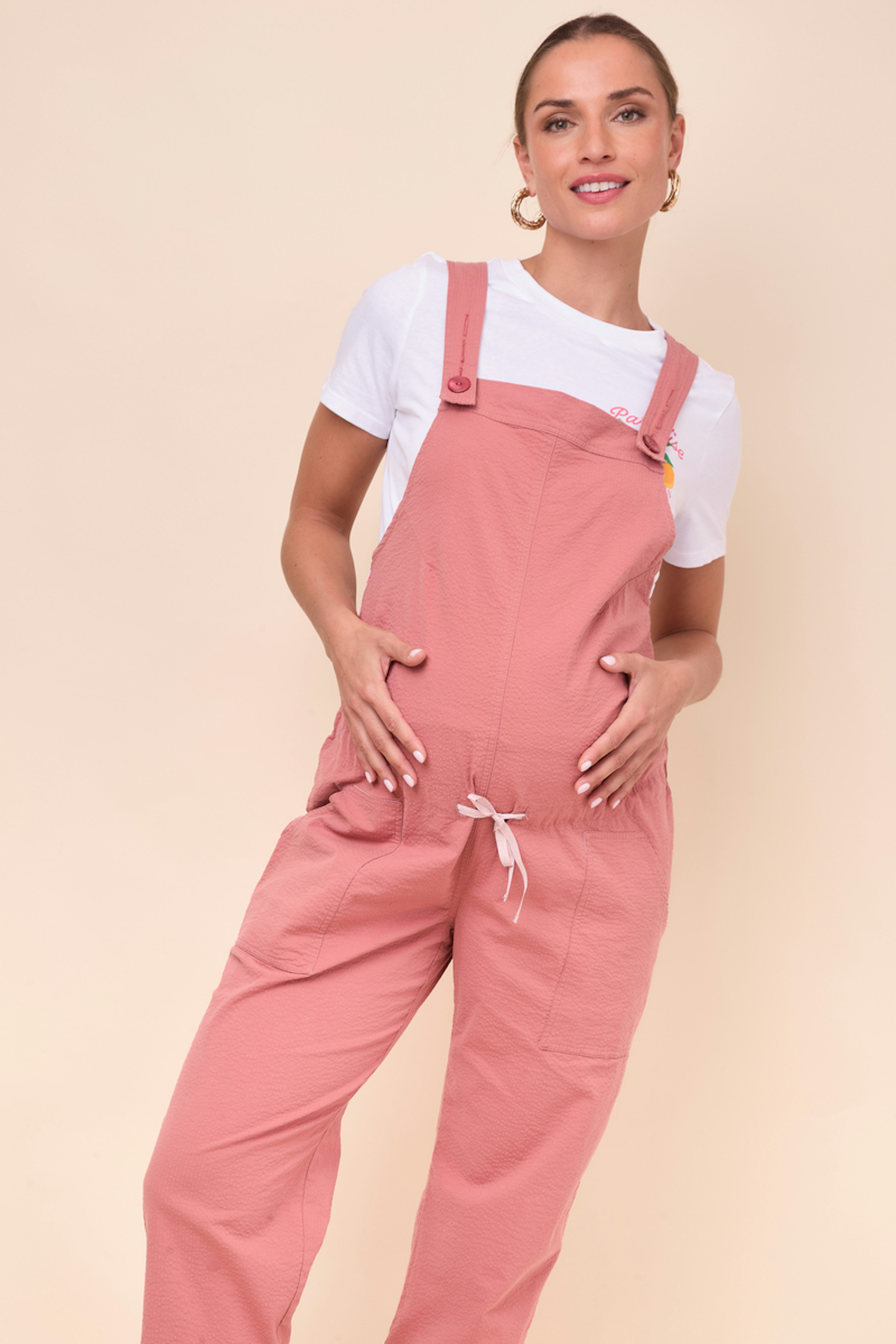 Pair these overalls with a white t-shirt and sandals for a casual summer look. • Maternity overalls in linen and cotton • Adjustable straps • Relaxed carpenter cut • Tie link under the belly • Side zips for adjustable fit