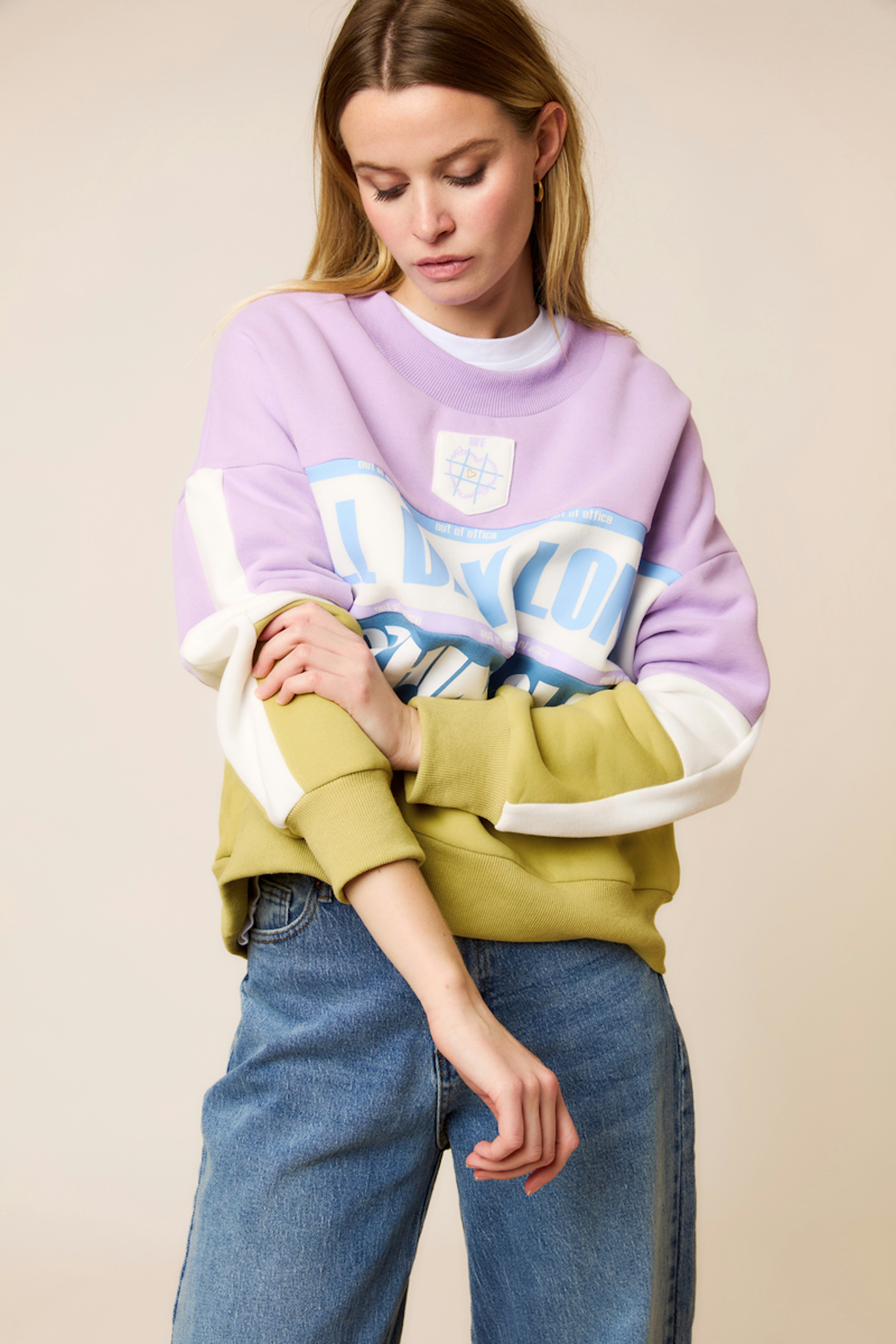 Pair this colorful sweater with casual jeans and white sneakers for a trendy urban look, perfect for tackling winter in style. • Long-sleeve sweater • Relaxed fit • Classic round neck • Fitted cuffs • Graphic print pattern