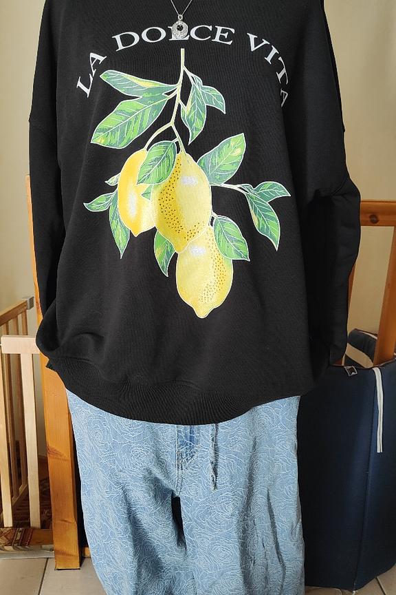 Match this sweat with skinny jeans and white sneakers for a casual yet chic winter look. โข Cotton sweat โข Round neck โข Long sleeves โข Relaxed fit โข Printed pattern