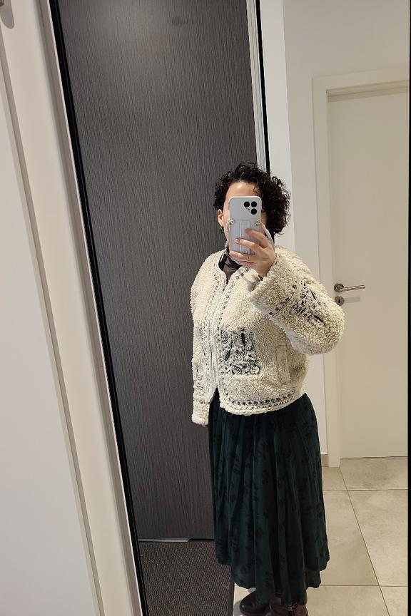 “Love this. As others have said it’s not a bright white/ cream it has a bit of a dull beige tint but it still looks great. it’s really unique, comfortable, warm and easy to style.”