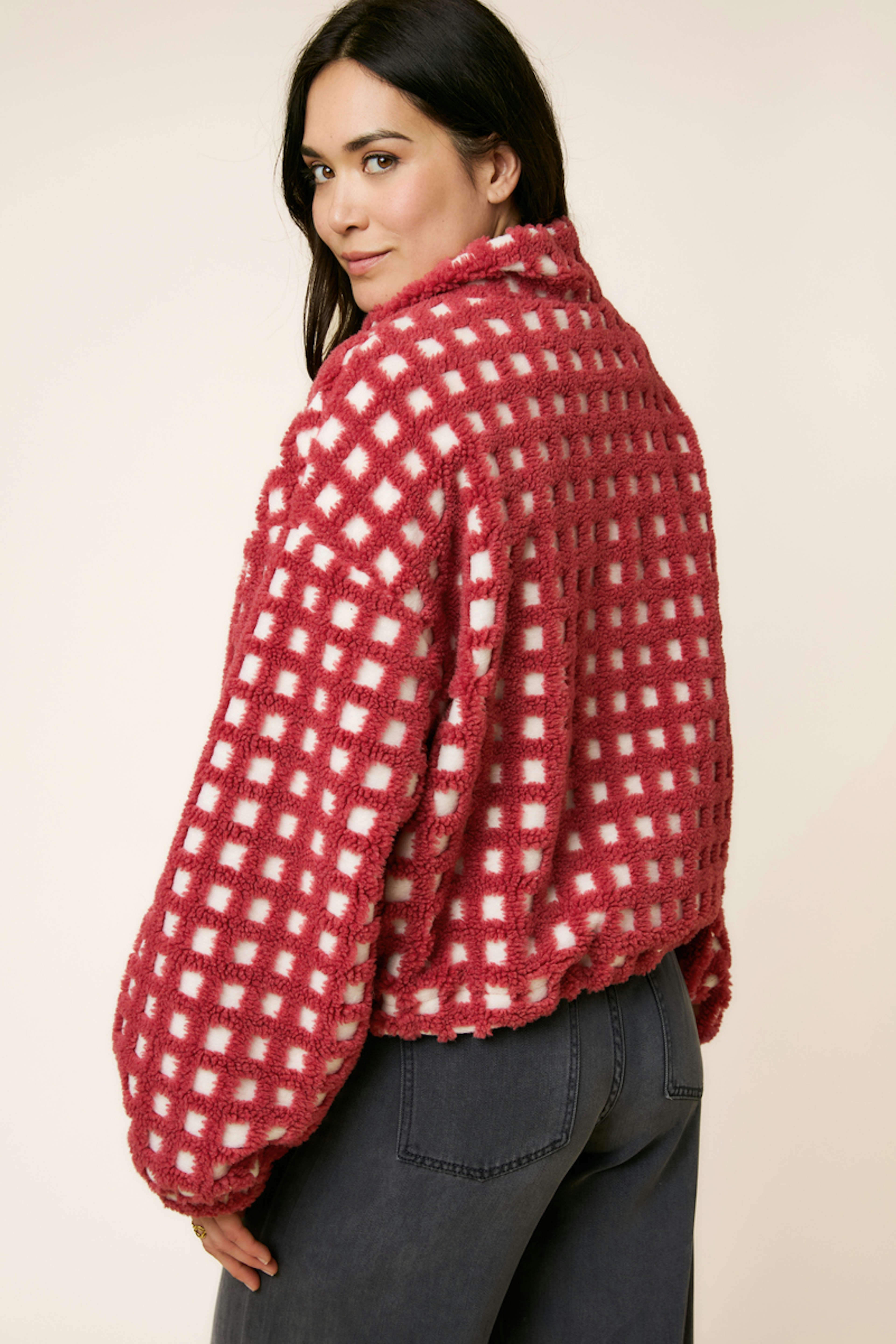For a chic, cozy vibe, pair this jacket with skinny jeans and leather ankle boots. Perfect to add a bold touch to your winter outfits! • Patterned jacket • Loose fit • High collar • Long sleeves • Checked print