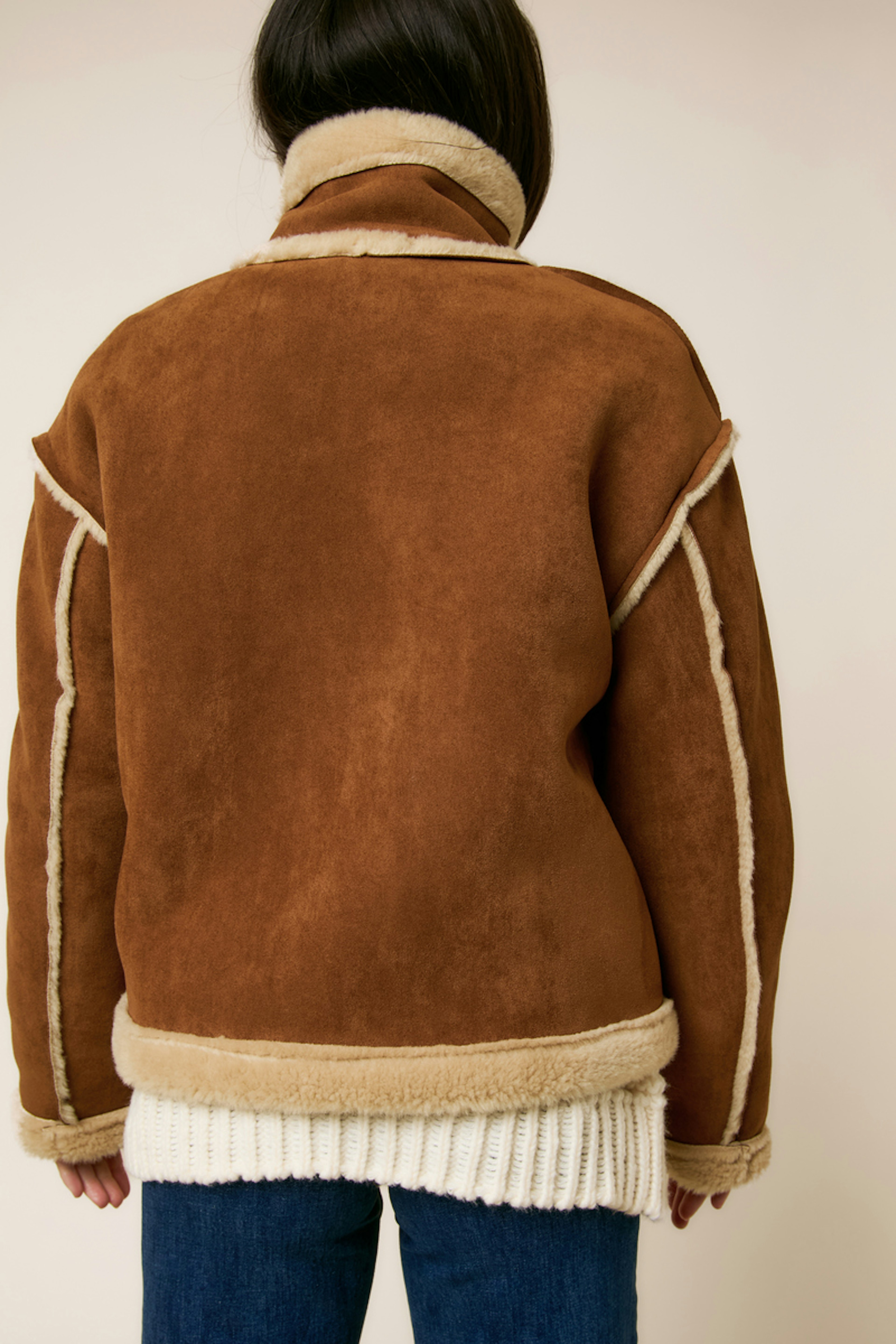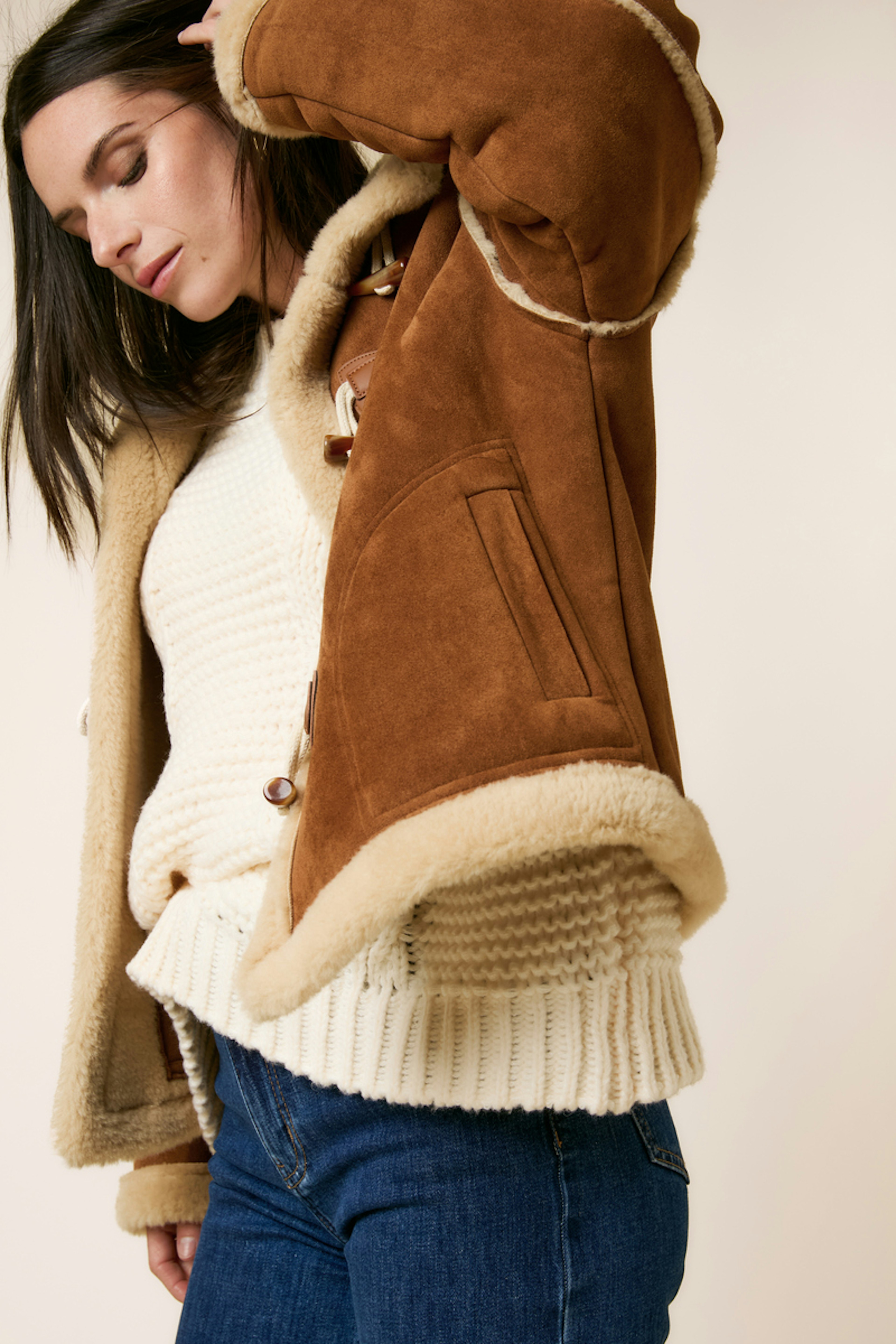 Add a touch of chic to your outfit with a slim jean and leather boots to face winter in style. • Jacket with a unique button design • Comfortable fit and inner lining • Long sleeves for extra warmth • High collar for maximum protection • Contrasting details in fluffy material