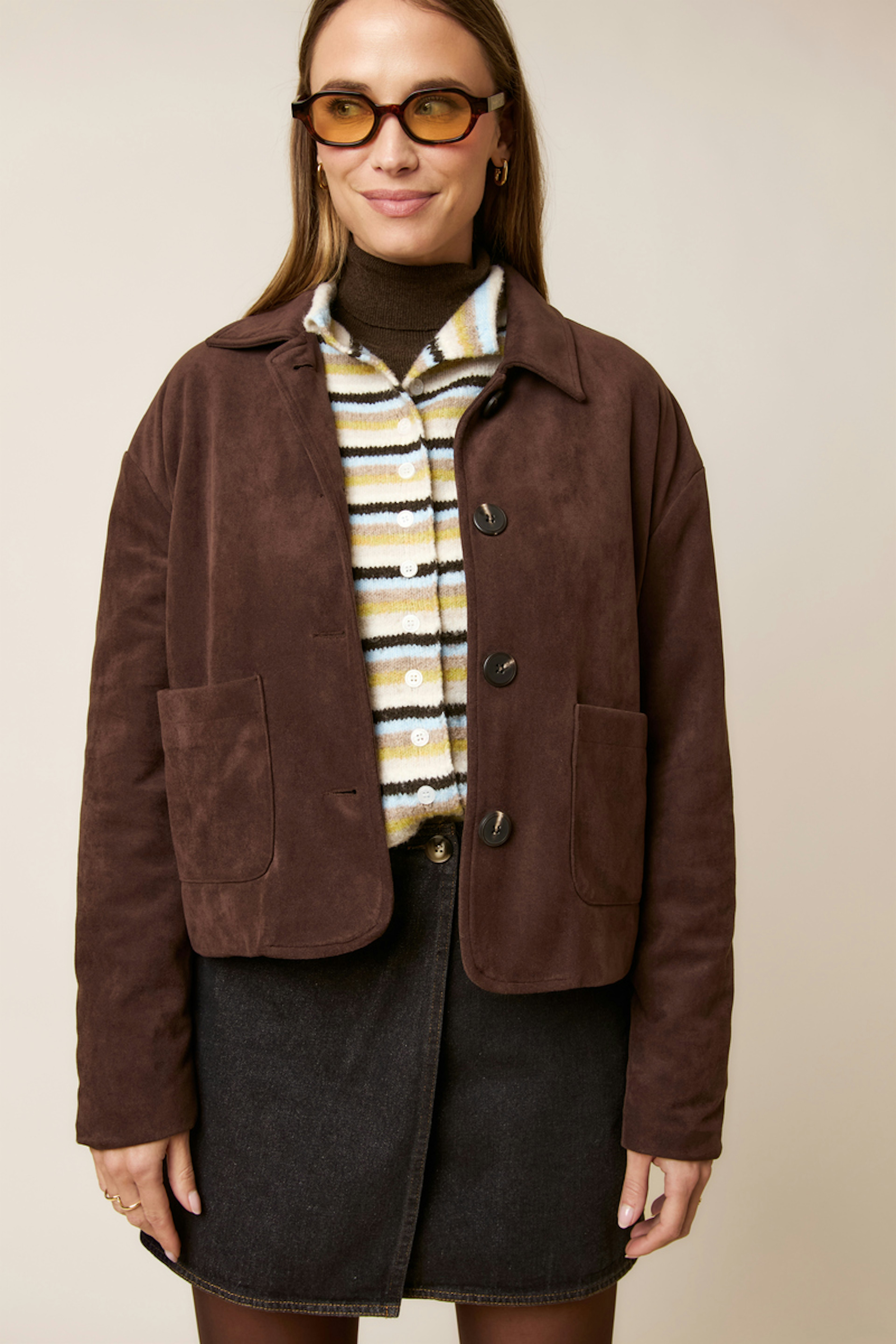 Mix and match with raw jeans and a turtleneck for a cozy-chic winter look. • Short jacket • Straight cut • Long sleeves • Button closure • Patch pockets