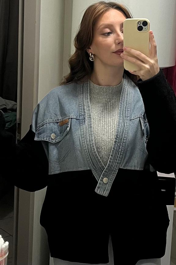 Style this jacket with black cigarette pants and leather ankle boots for a chic and relaxed winter look. • Cotton jacket • Loose fit • Long sleeves • Buttoned chest pockets • Elegant two-tone design