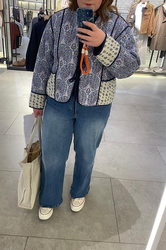 Add a bohemian touch to your outfit by pairing this jacket with slim jeans and leather ankle boots for a chic casual look. • Viscose jacket • Short cut • Long sleeves • Tied closure • Printed pattern