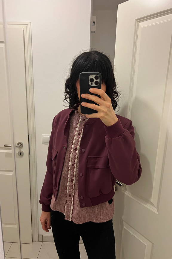 “I loved wearing it. Very nice and comfortable bomber cut. Very pretty color.”