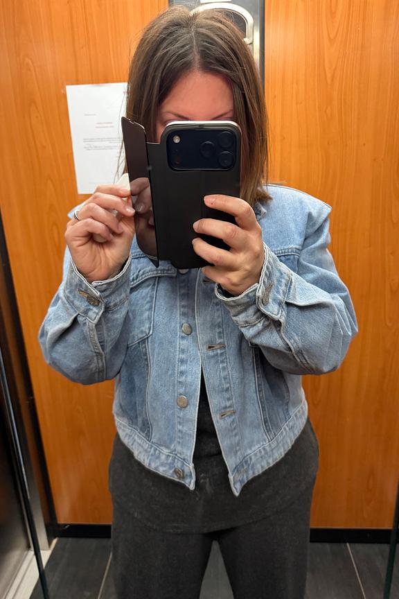 Add a relaxed vibe to your look with this denim jacket—perfect with high-waisted pants and a minimalist tee shirt for those summer nights. • Denim jacket • Straight cut • Long sleeves • Shirt collar • Contrasting details