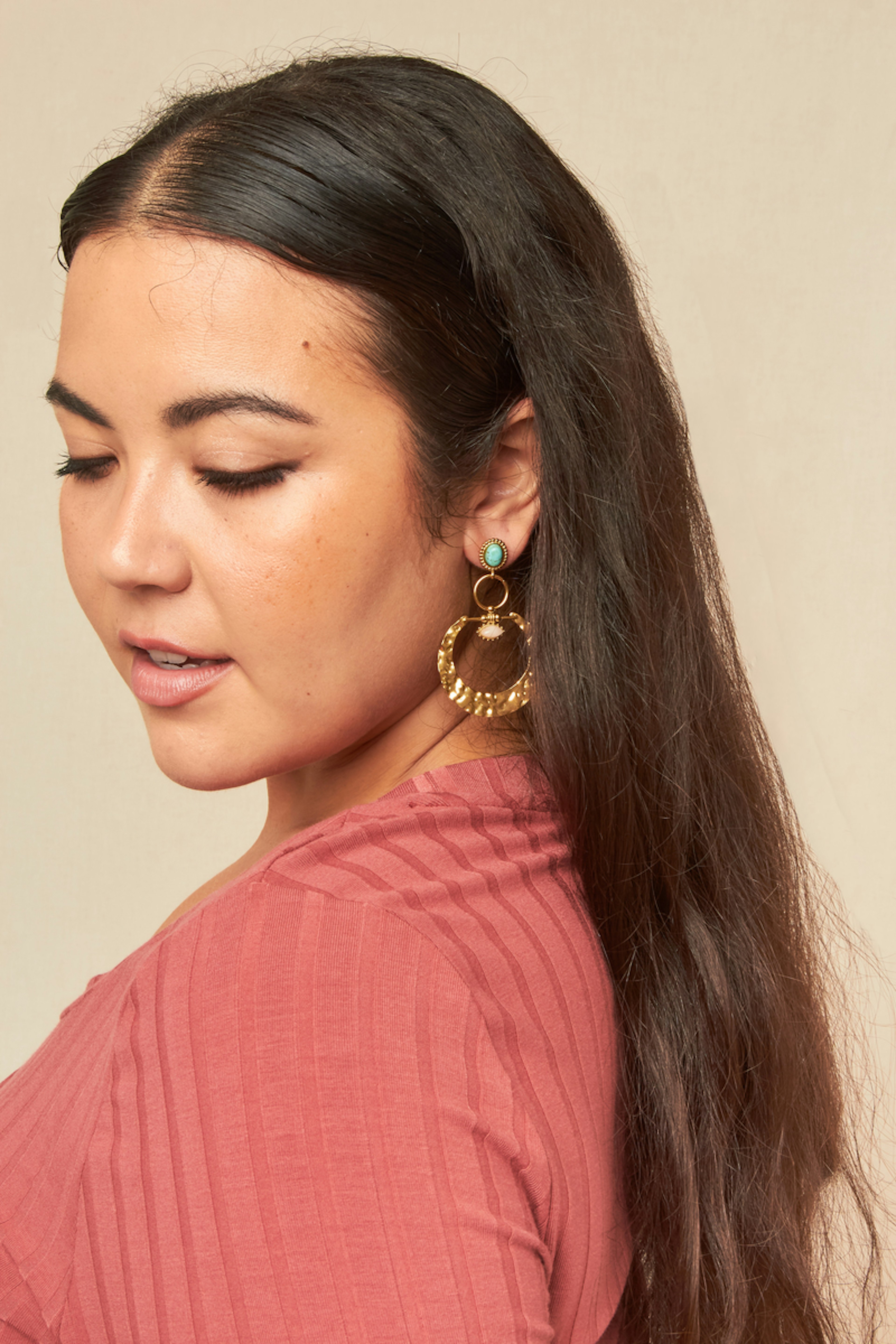 Boucles d'oreilles bohème chic turquoise coeur argent vieilli