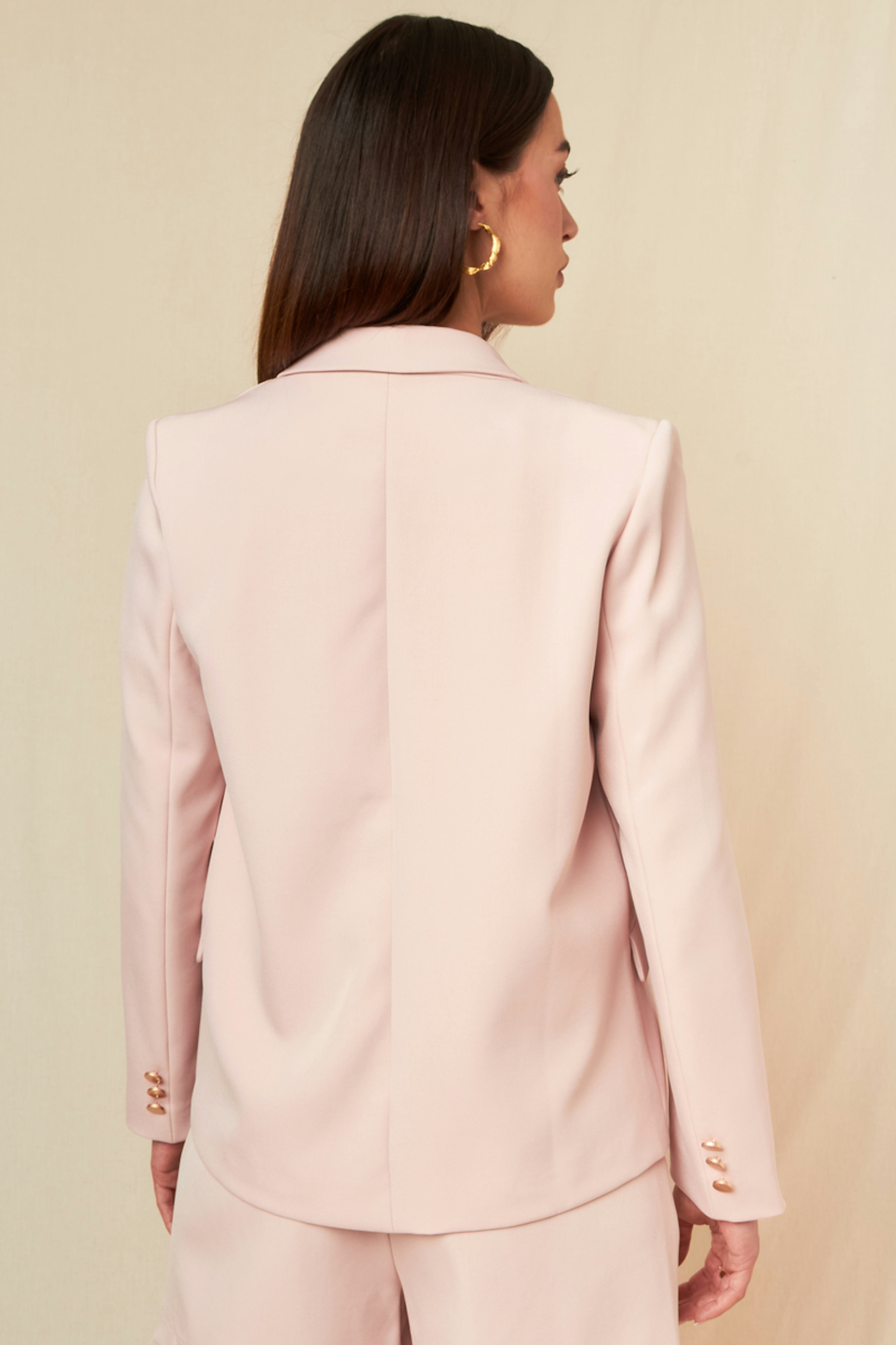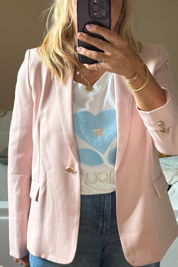 Geef je look een chique touch met deze roze blazer. Combineer hem met een jeans met hoge taille en sandalen voor een zonnige dag. - Slim-fit blazer - Lange mouwen - Gouden sluiting met één knoop - Onopvallende epauletten - Flapzakken