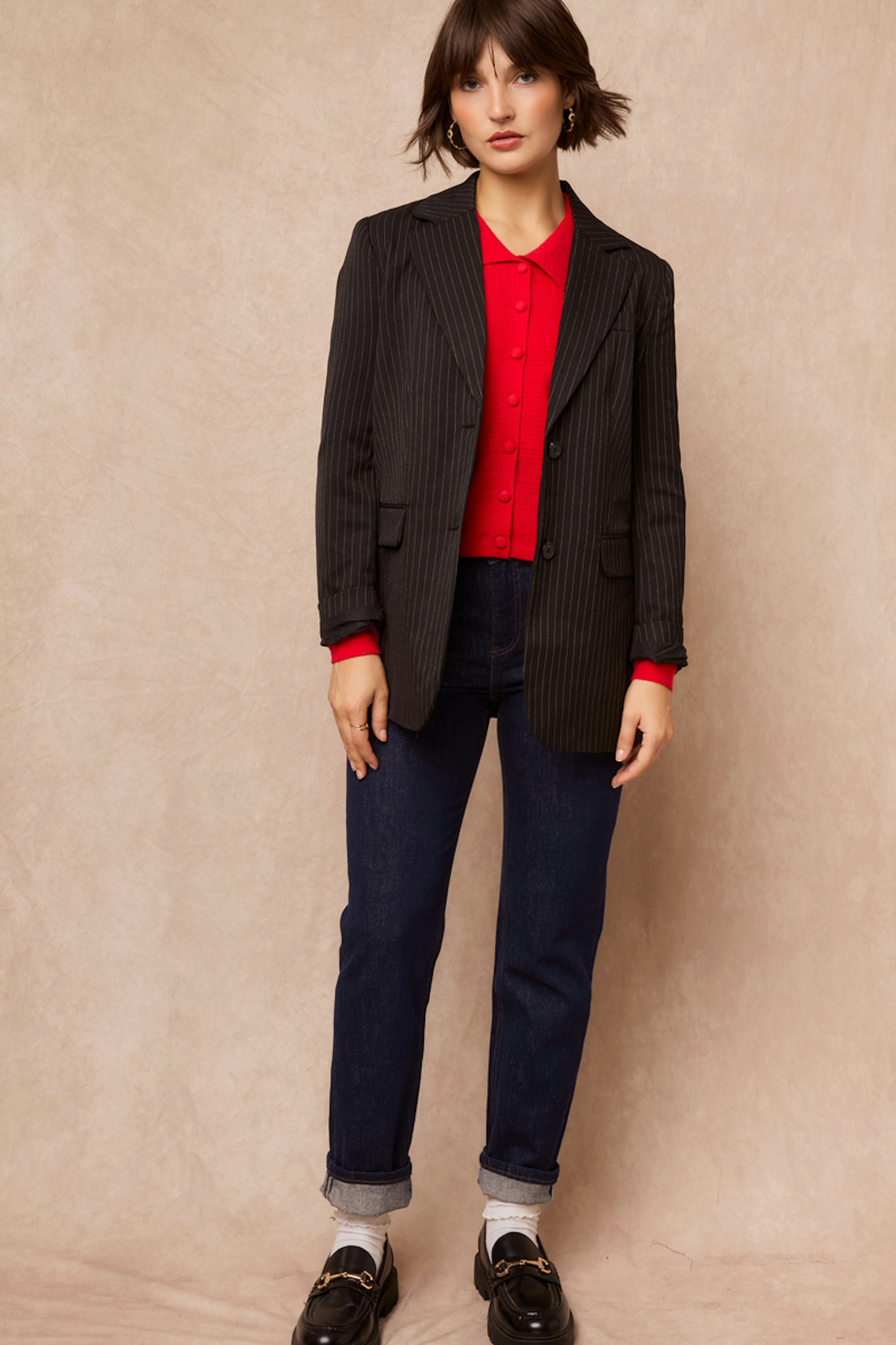 Draag dit oversized blazer met een kleurrijke bloes en een jeans voor een chique en casual look. Perfect in elk seizoen ! • Gestreept blazer • Oversized snit • Reverskraag • Sluiting met knopen • Flapzakken