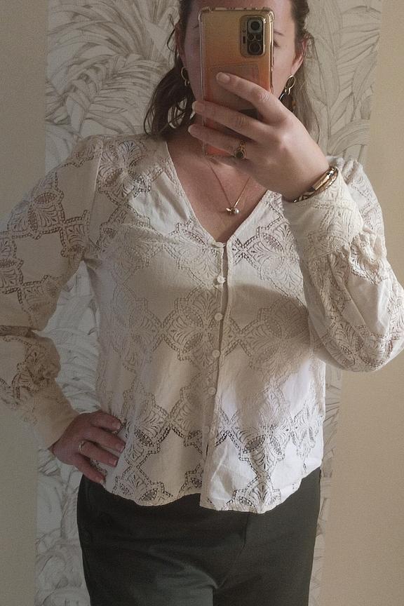 Zeer mooie blouse, van goede kwaliteit. Geeft karakter aan de outfit." "