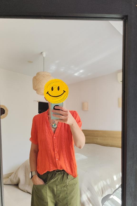 Heel mooie blouse, mooie kleur ook. Alleen te kort voor 1.75m en heb het daardoor niet kunnen dragen." "