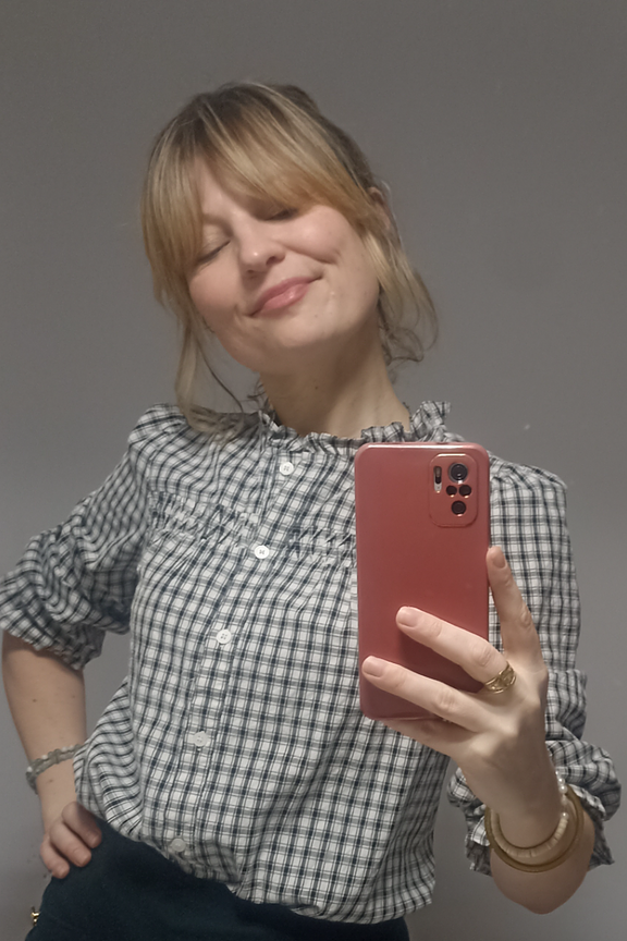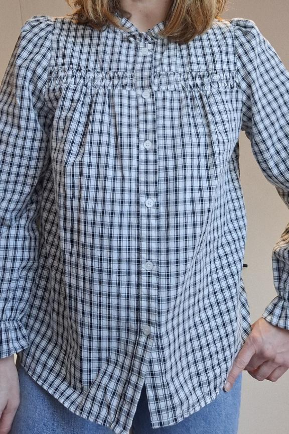 Dit geruite overhemd past perfect bij een zwarte sigarettenbroek en loafers. Een lichtgewicht sjaal voegt een vleugje warmte toe. Ideaal voor de winter. • Geruit overhemd • Lange mouwen • Hoge kraag • Gedenktekenen plooit bij de schouders • Delicate knopen