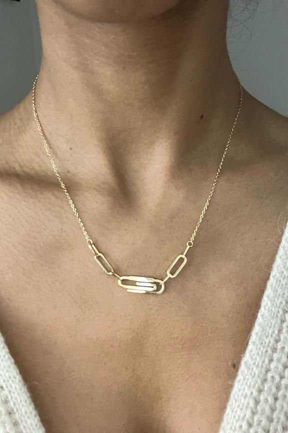 Voeg een vleugje verfijning toe aan uw outfit met dit elegante collier. Combineer het met een witte blouse en een strakke broek voor een chique en moderne look. Perfect in elk seizoen. • Collier van roestvrij staal • Subtiele en elegante ketting • Geometrische schakels • Duidelijk centraal detail • Glanzende gouden afwerking