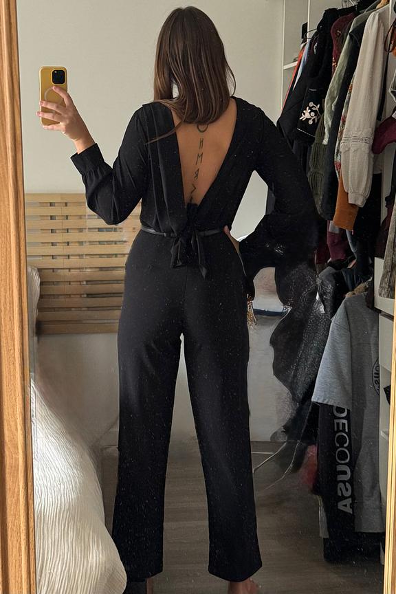 Ga voor een chique look met pumps en een chignon. Ideaal voor elegante avondjes uit of evenementen. - Losjes vallend broekpak - V-hals - Strikje achter - Ronde hals - Lange mouwen