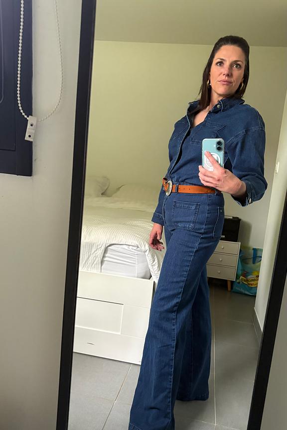 Deze jumpsuit is perfect te combineren met leren enkellaarsjes en een lange jas voor een chique urban look deze winter. β’ Jumpsuit van katoen β’ Lange mouwen β’ Taille met inzetten β’ Geplakte zakken β’ Knopsluiting