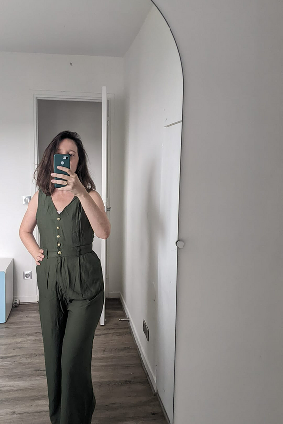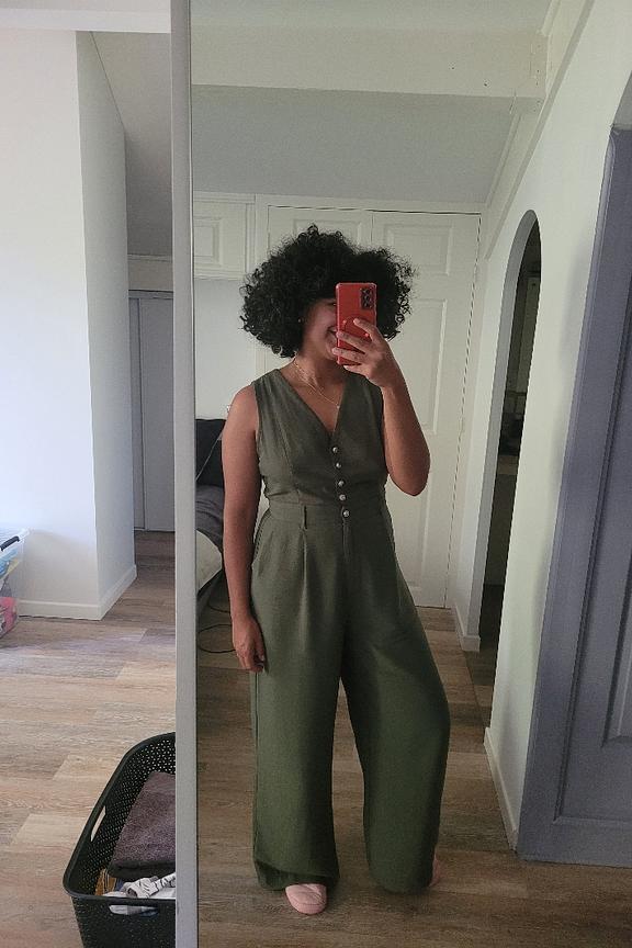 Ik heb deze jumpsuit geweldig gevonden, hij valt en zit goed. Een beetje lang voor mijn 1m60." "