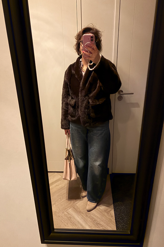 Draag deze jas over een trui en jeans voor een perfecte cozy look in de winter. • Prachtige neppels in imitatief bever • Recht en gestructureerd model • Elegante lange mouwen • Licht verhoogde kraag • Praktische voorzakken