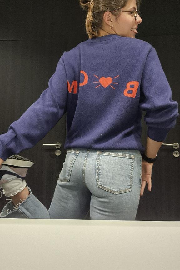 Combineer dit vest boordevol persoonlijkheid met een jeans met hoge taille en witte gympen voor een chique casual look. Perfect het hele jaar door. - Vest met lange mouwen - Casual model - Tekstmotief op achterkant - Geribde boorden - Elegant blauw