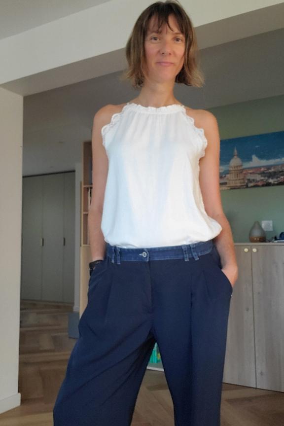 Combineer deze top met een vloeiende broek en sandalen voor een verfijnde zomerlook. - Top van linnen en viscose - Dunne bandjes - Kanten details - Vloeiende pasvorm - Gerimpelde halslijn