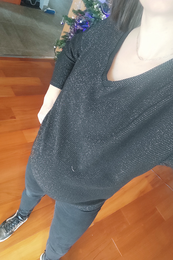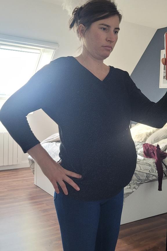 Erg mooie trui maar niet echt geschikt voor het einde van de zwangerschap, het elastiek zit een beetje strak onderaan de buik." "