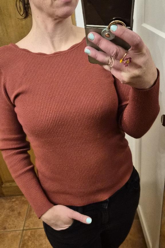 Combineer deze elegante top met een leren rok voor een chique winterlook. • Trui met een laag rug • Lange mouwen • Uitsnijding aan de achterkant • Strakke pasvorm • Gegolfde afwerking