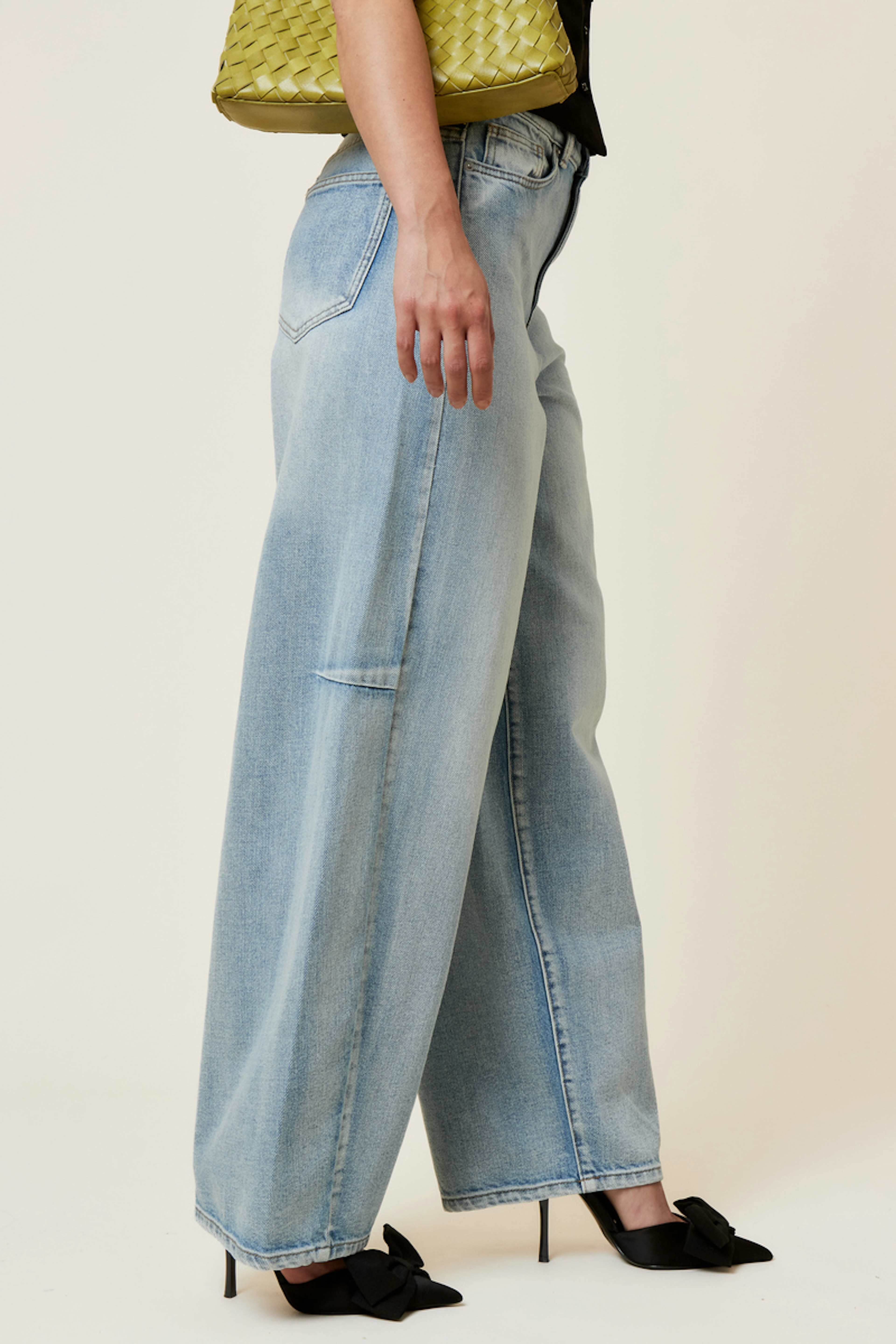 Voeg een vleugje charme toe met een blouse met pofmouwen en elegante hakken. Perfect voor elk seizoen. • Ruime jeans • Wide leg model • Hoge taille • Generieuze lengte • Lichte wassing