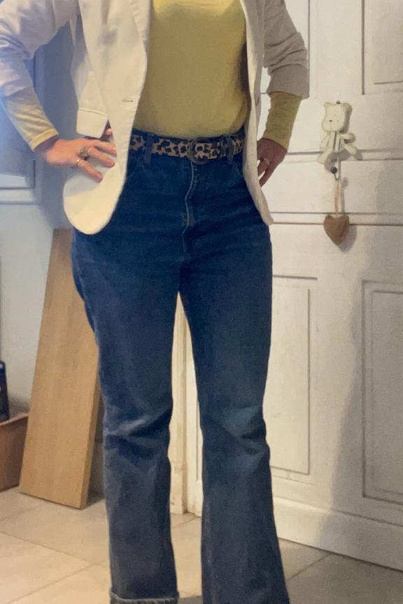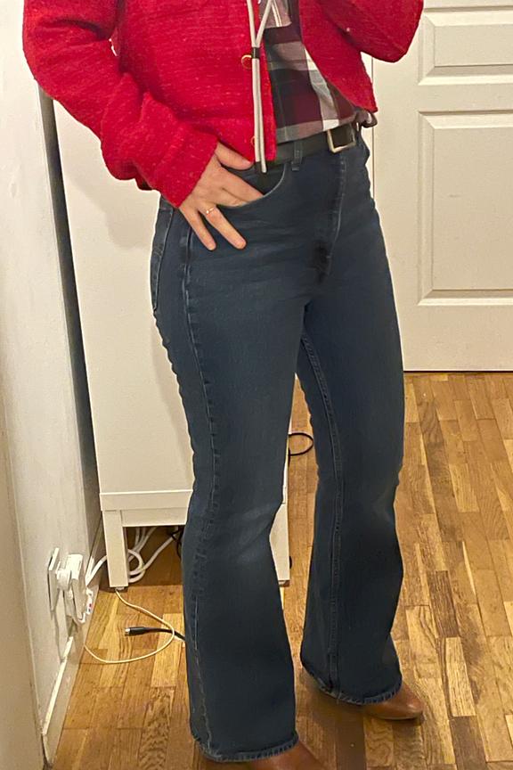 Val voor deze op de jaren 70 geïnspireerde jeans met hoge flare! - Slanke pasvorm van heupen tot bovenbenen - Uitlopende zoom - Ultrahoge taille - Ritssluiting - 5-pocket ontwerp - Lengte 32