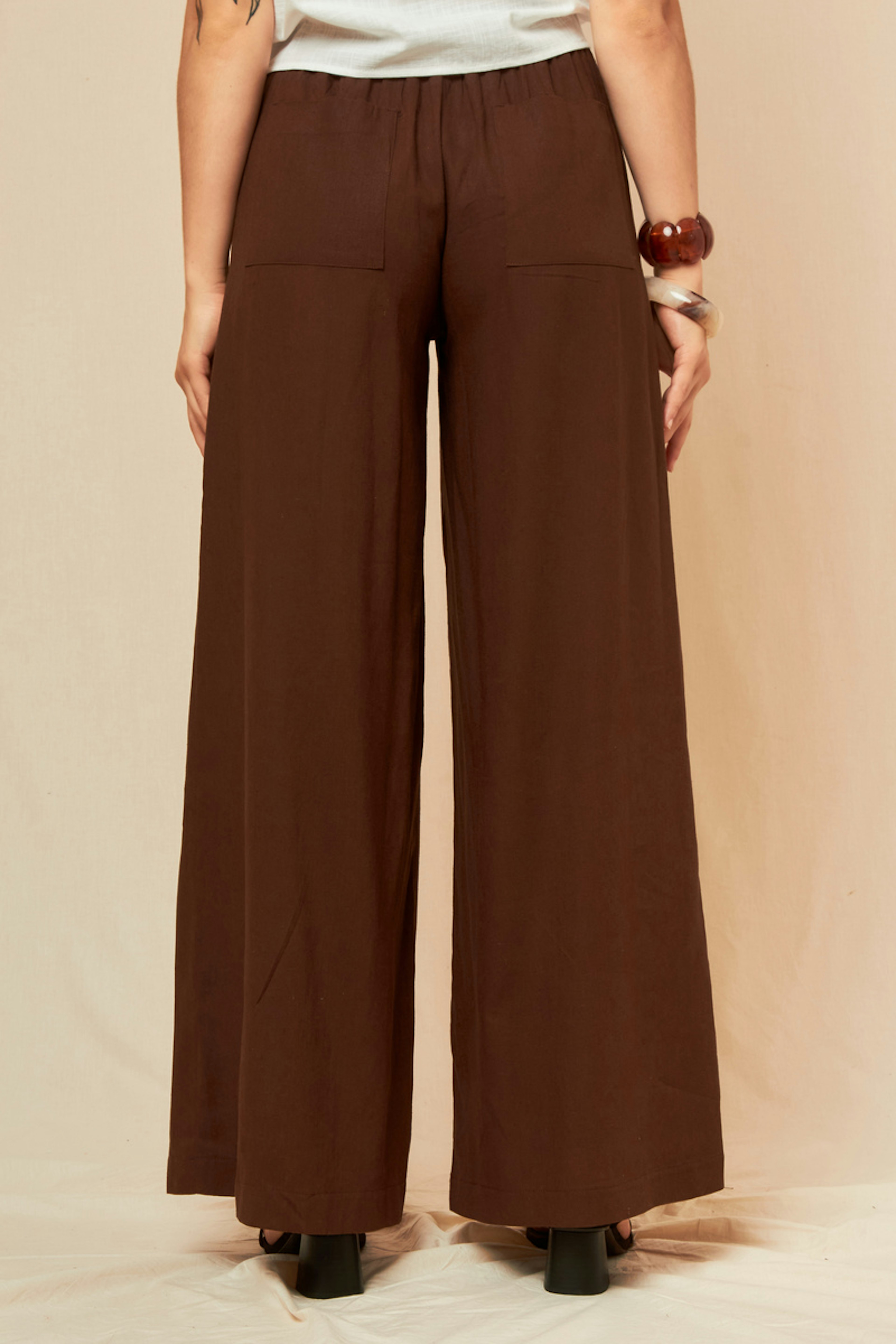 Combineer deze losvallende broek met een getailleerde top voor een smart-casual look. Ideaal voor zonnige dagen. - Linnen broek - Los model - Hoge taille - Band met trekkoord - Plooien aan de voorkant