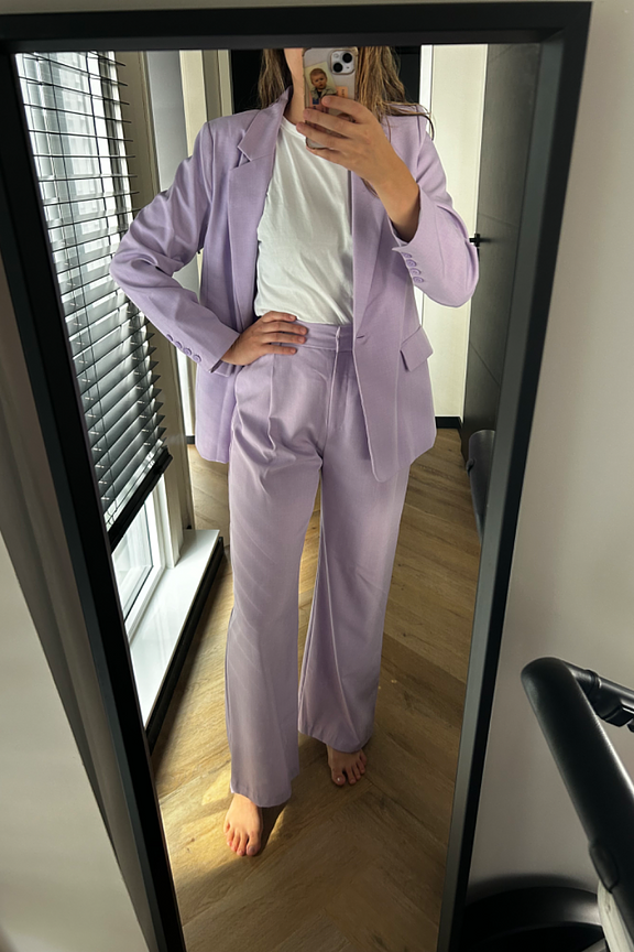 - Losvallende mauve broek - Kostuum - Wijde pijpen - Dubbele klittenbandsluiting en ritssluiting onder de sluiting - Twee zijzakken - Perfect voor lange vrouwen (1m70 en meer)