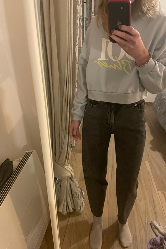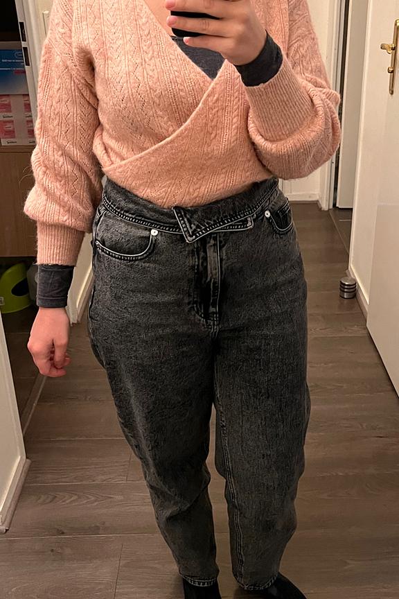 - Balloon jeans in vervaagde zwarte stof - Stevige stof, geen elastaan - Originele riem - 5 zakken - Gulp met rits