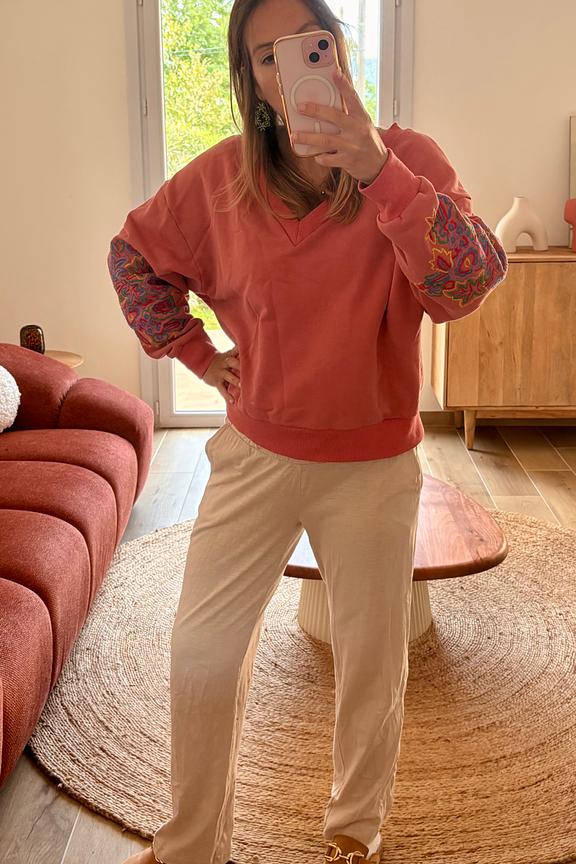 Ga voor casual chic met deze broek van biologisch katoen, perfect met een basic T-shirt en gouden ballerina's voor een comfortabele zomerlook. - Biologisch katoenen broek - Elastische taille - Ondersteunende band - Losse pasvorm - Ideaal voor zwangerschap