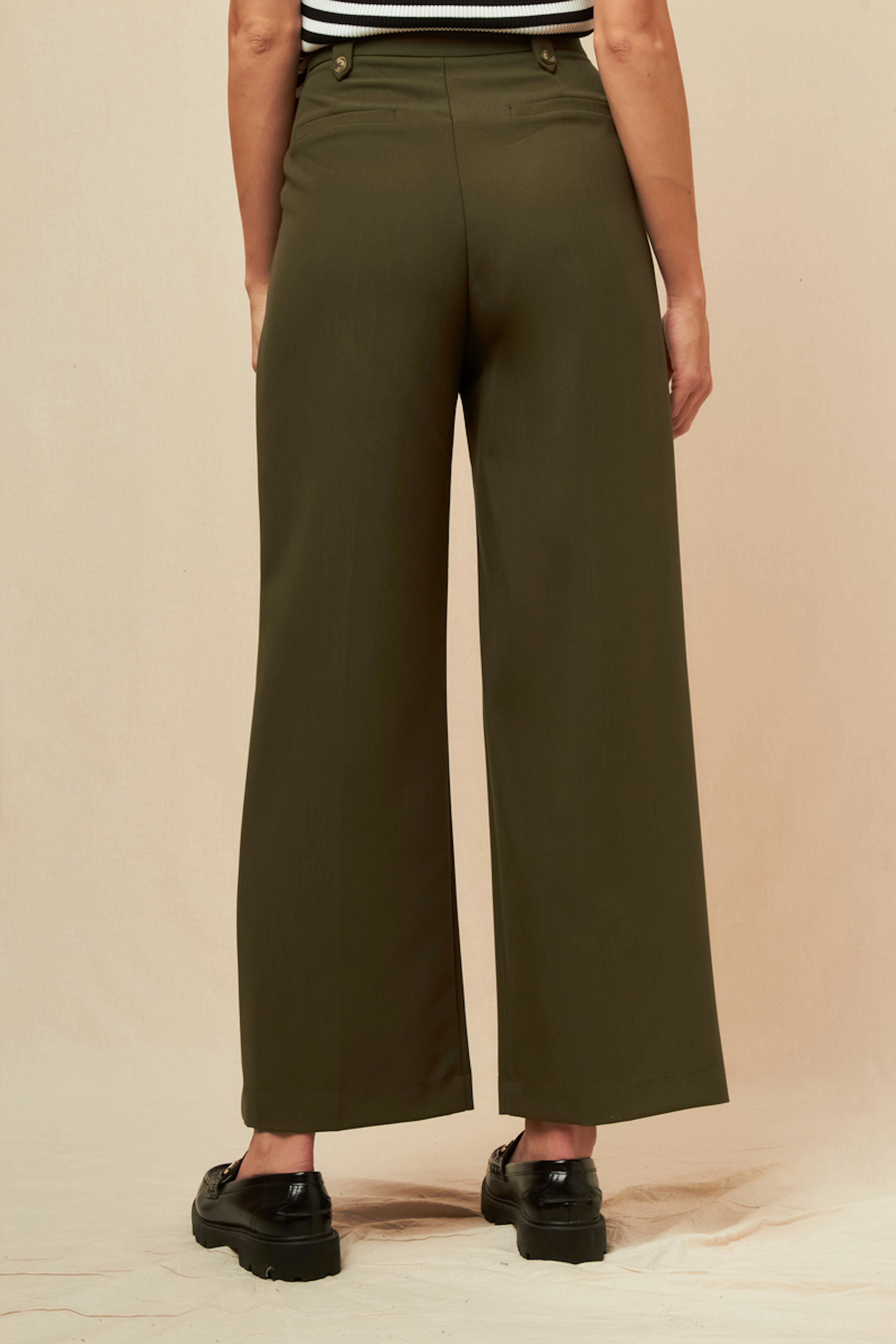 Voeg een vleugje contrast toe met een wit overhemd voor een klassieke look. Perfect voor alle seizoenen. • Ruime broek • Flatterende hoge taille • Brede benen • Plooien op de taille • Praktische zijzakken