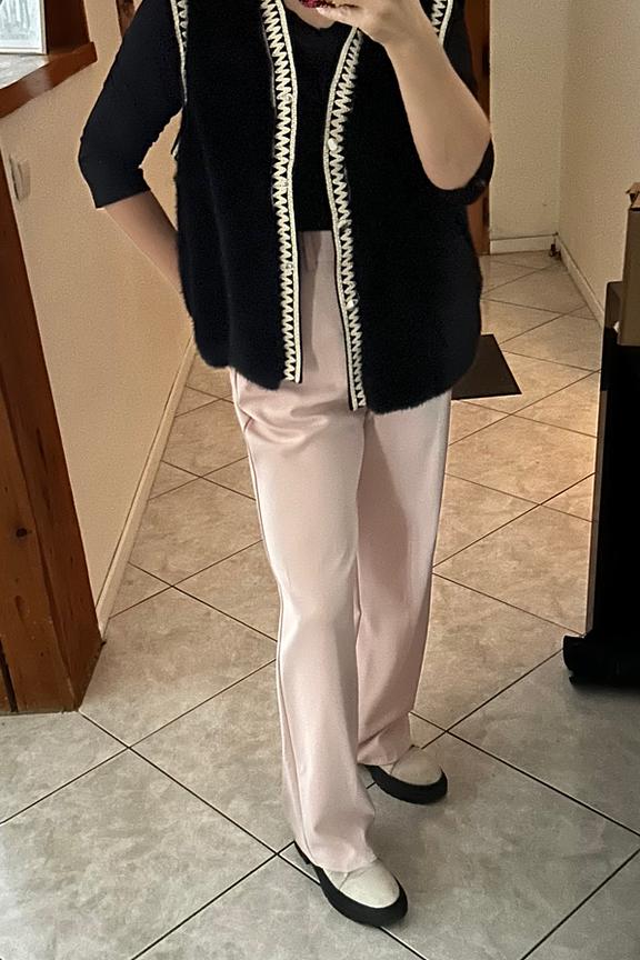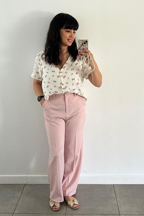 Voor een chique zomerse look combineer je deze roze broek met een witte linnen top en gouden sandalen. - Broek met hoge taille - Recht model - Licht uitlopende enkel - Praktische zijzakken - Zacht pastelroze