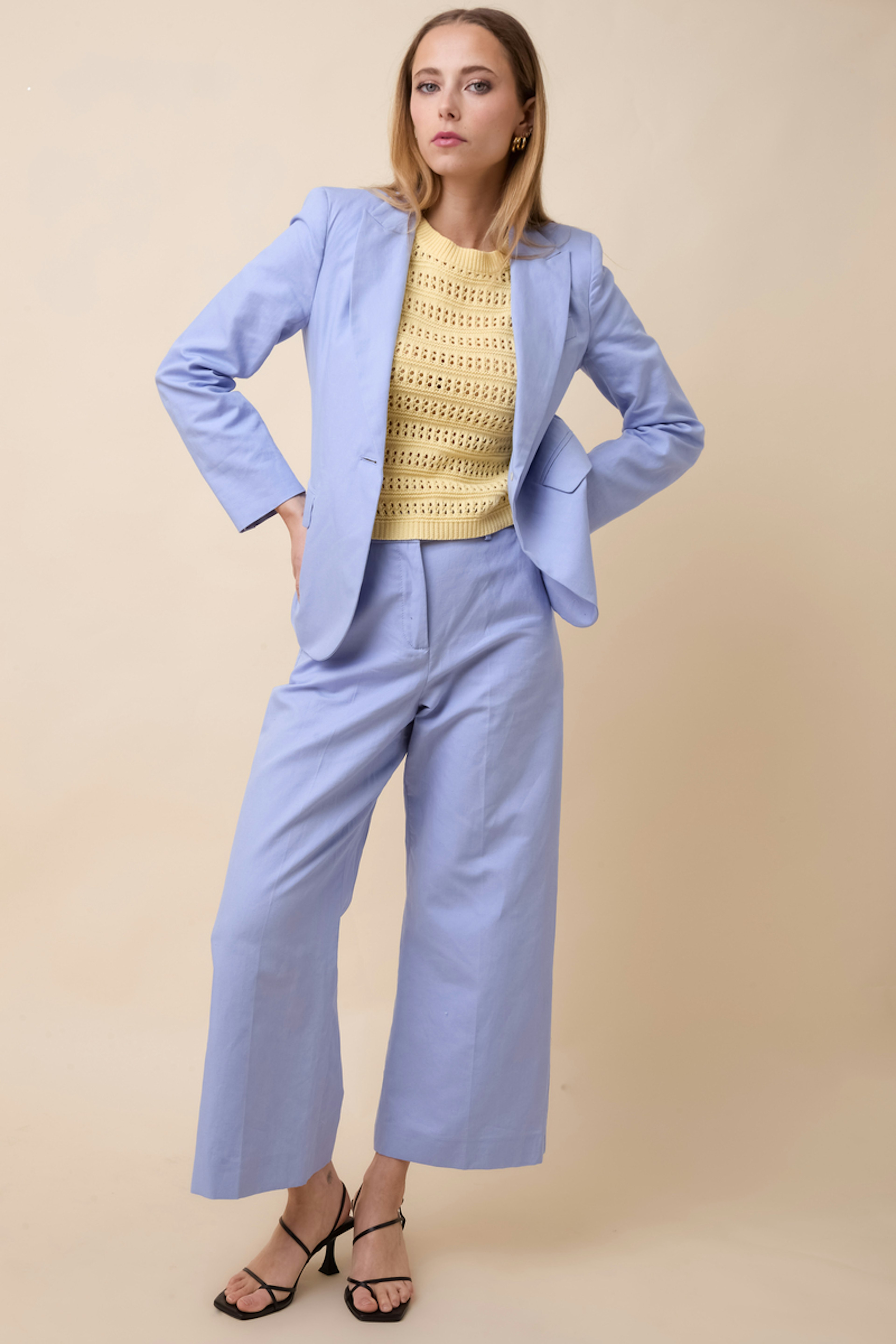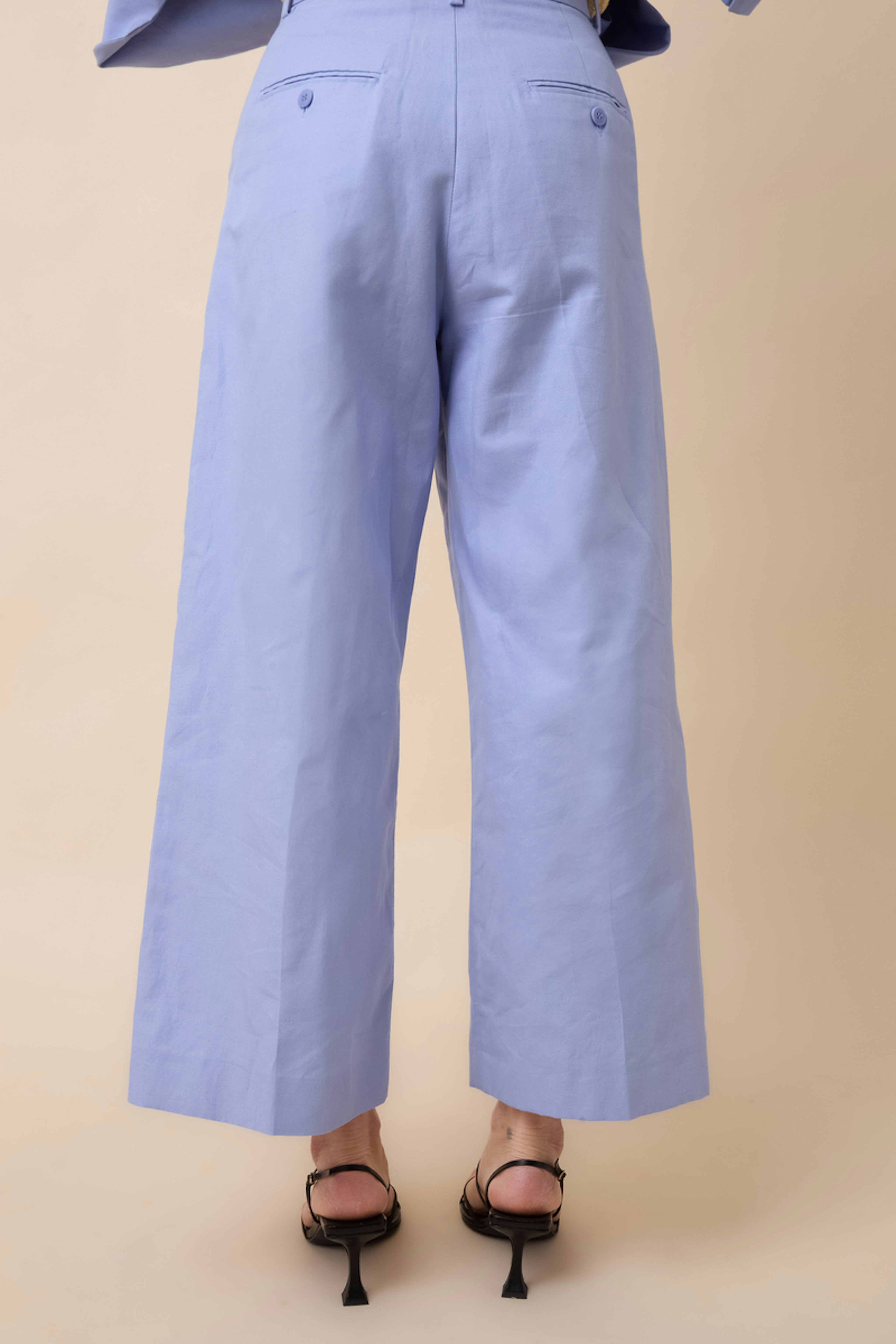 Combineer deze broek met een vloeiend overhemd en muiltjes met hak voor een chique look. Perfect voor het hele jaar. - Katoen en linnen broek - Wijd uitgesneden model - Gemarkeerde plooi aan de voorkant - Riemlussen - Schuine zakken