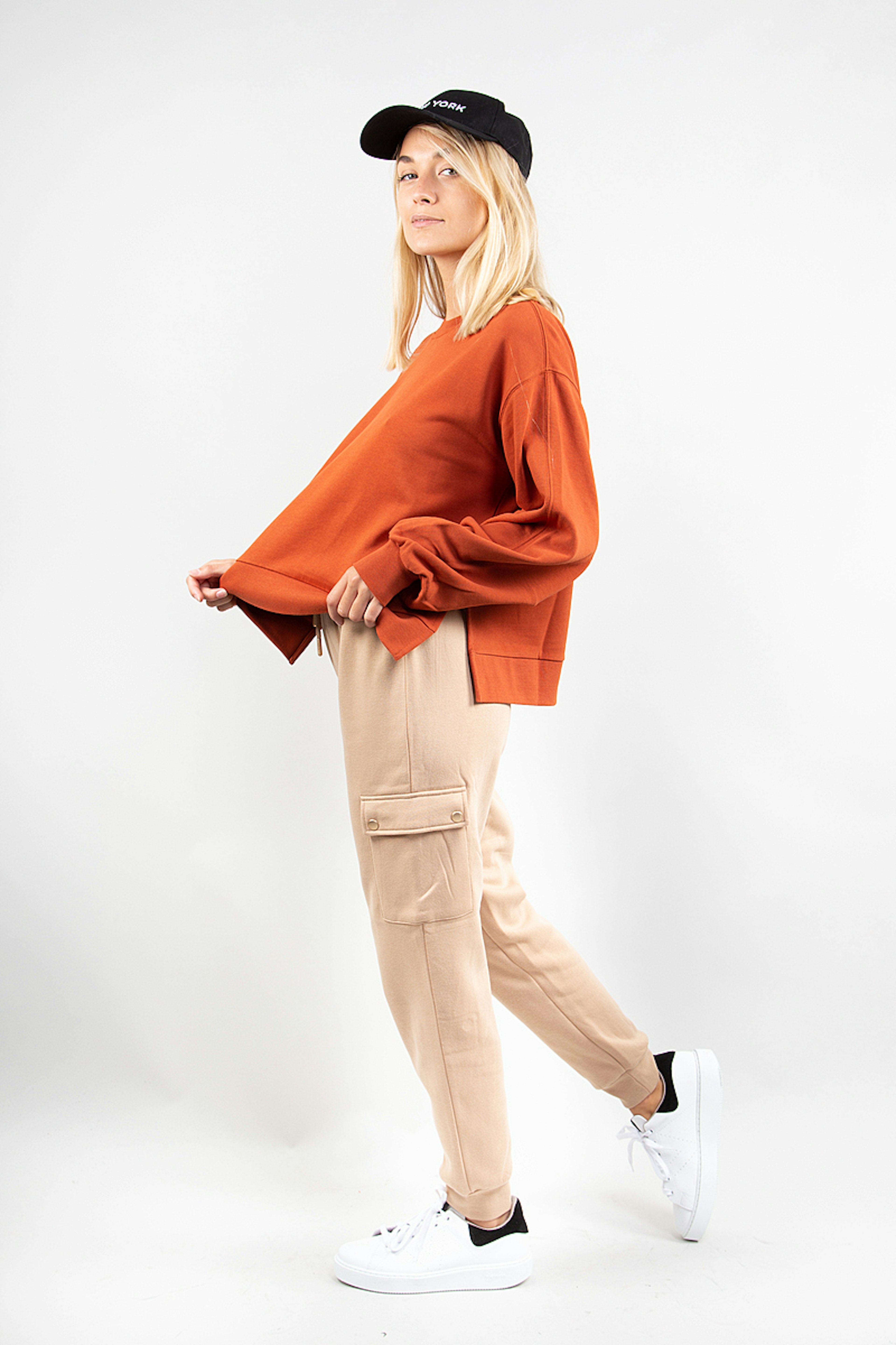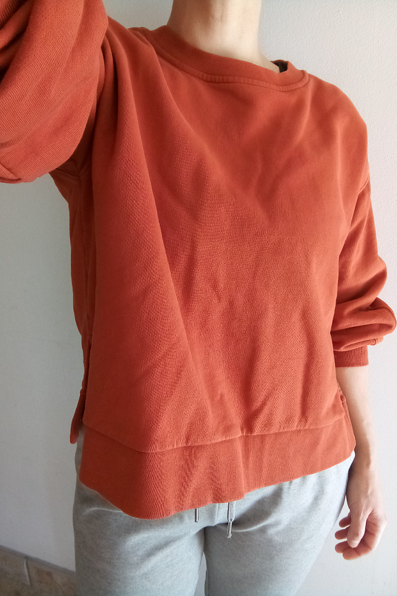 We zijn dol op de baksteenkleur van dit zachte sweatshirt van Knowledge Cotton Apparel. - Fleece van biologisch katoen - Ballonmouwen - Split onderaan - Brede geribde boorden