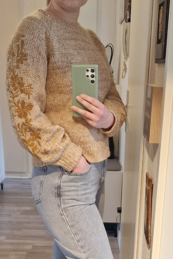 Ga voor een cosy look door deze trui te combineren met een slim jeans en enkellaarsjes voor een relaxte en warme stijl in de winter. • Trui van wol en mohair • Lange, puff sleeves • Klassieke ronde hals • Bloemmotief op de mouwen • Ruime en comfortabele pasvorm