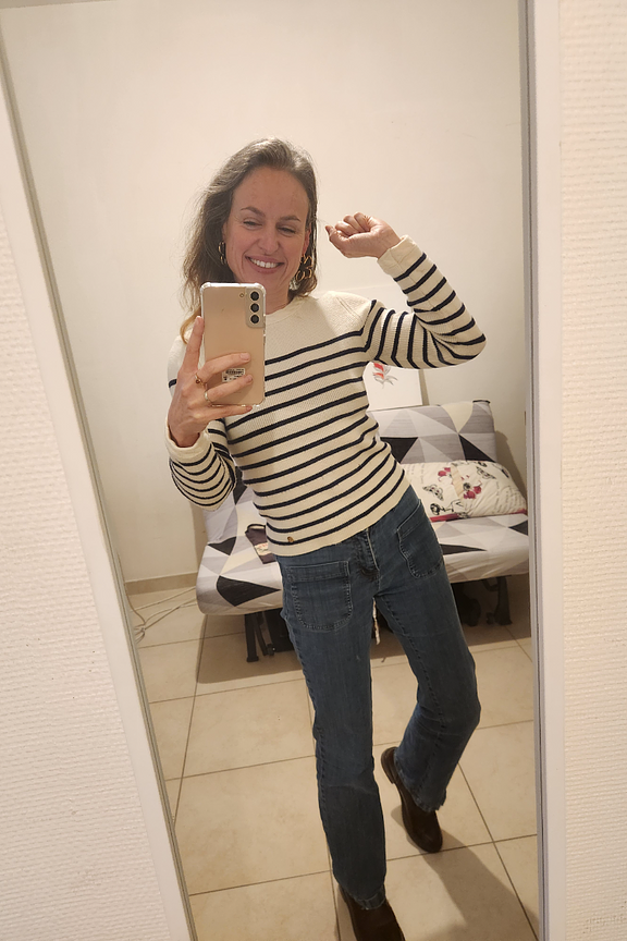 Neem een tijdloze stijl aan met deze gestreepte trui. Combineer hem met een raw jeans en enkellaarsjes voor een chique en casual look. • Gestreepte trui • Aangesloten snit • Ronde hals • Lange mouwen • Gestreept patroon