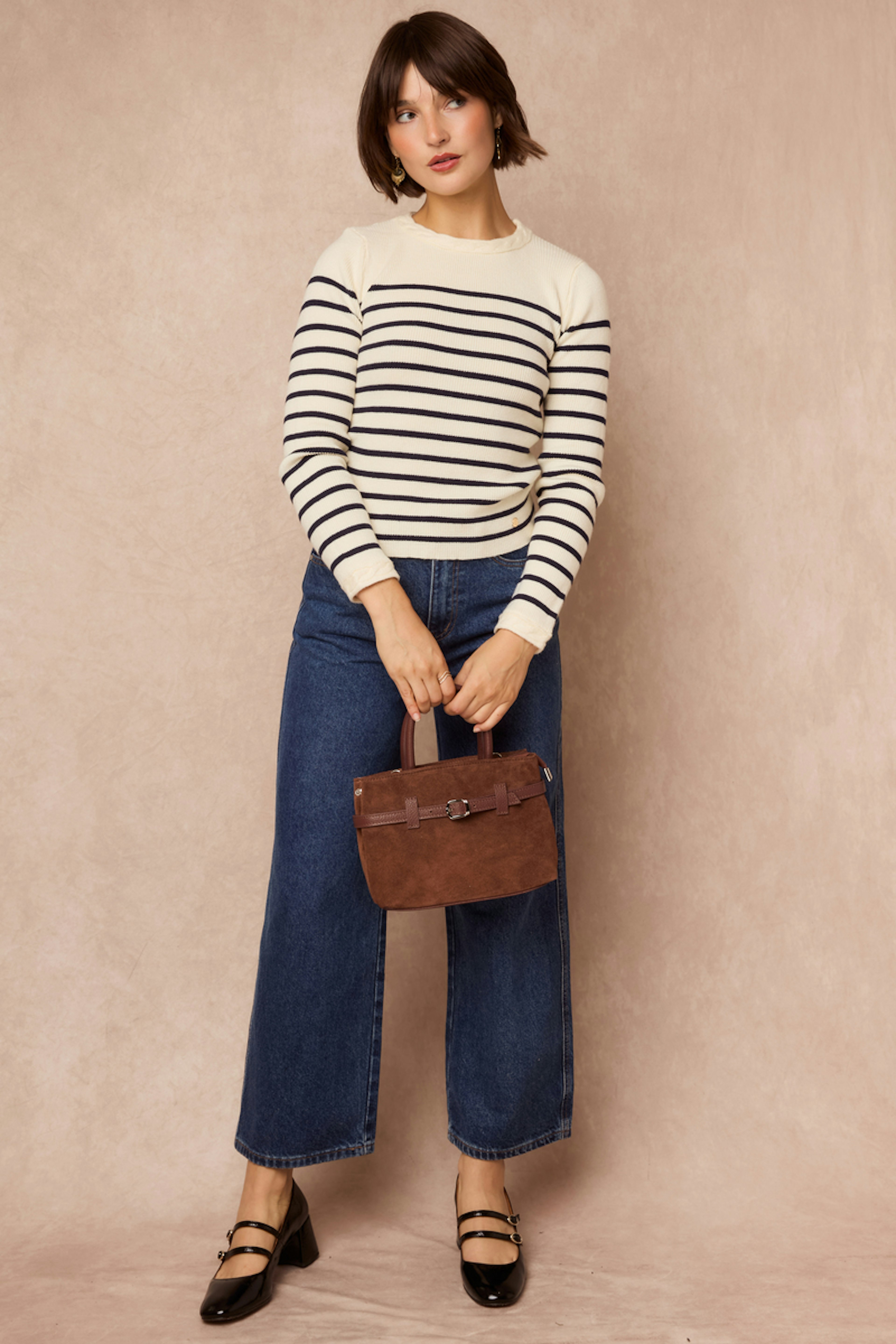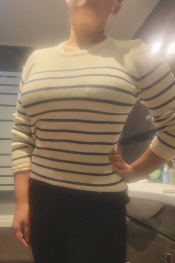 Neem een tijdloze stijl aan met deze gestreepte trui. Combineer hem met een raw jeans en enkellaarsjes voor een chique en casual look. • Gestreepte trui • Aangesloten snit • Ronde hals • Lange mouwen • Gestreept patroon