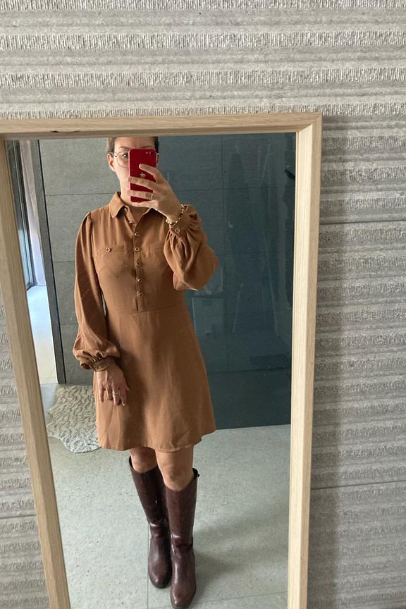 Pas deze Petite Mendigote jurk op maat. - Opening met knoop - Uitgesneden taille - Strakke manchetten - Borstzakken Petite Mendigote, wat in oud-Frans "oude bedelaar" betekent, is een merk met een zeer Parijse, vrouwelijke stijl die een frisse touch aan je garderobe zal geven.